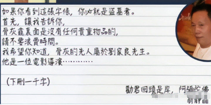 警方对此也是高度重视,因为刘家良骨灰所在的香港沙田宝福山坟场其实有多起名人和富豪的骨灰都在此。