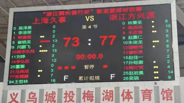 易边再战,上海队内线能够发挥优势,王哲林连续得分,偰李永炜中投得手,帮助球队保持领先,第3节后半段上海队防守强度下降,广厦打出8:0的进攻高潮将比分追至49平,偰李永炜三分连中,帮助球队稳定阵脚,三节战罢60:56上海队领先,末节广厦派出年轻球员,上海队主力基本都在,球场局势却发生变化,广厦打成一波11:0的进攻高潮反超7分,直到比赛最后一分钟,张镇麟暴扣,上海队罚球命中,将分差缩小到4分,最终73:77上海队遭遇逆转输给广厦,浙江稠州银行杯职业篮球邀请赛,上海男篮经历了两连败。