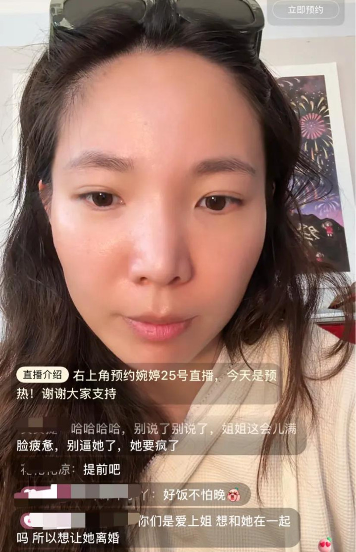 其实张婉婷会在今天选择发文也不是没有原因的,因为她要直播带货了。点进去她的账号一看,她正开着直播呢,她穿着米色外套,头戴墨镜,看起来像是没怎么打扮,虽然有美颜滤镜,但是人看着还是挺显疲惫的。