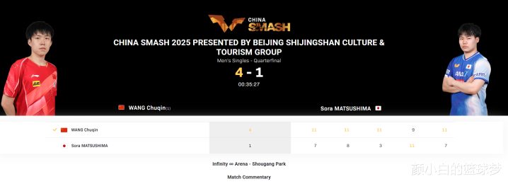 王楚钦4-1松岛辉空【11-7、11-8、11-3、9-11、11-7】止步8强;